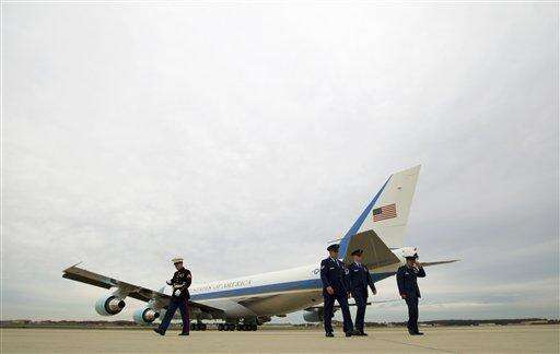 Military personnel walk away from Air Force One, with President Barack Obama aboard, prior to his departure from Andrews Air Force Base, Md., Monday Nov. 2, 2015, en route to Newark, N.J., to visit a drug treatment center and aims to boost his ongoing push for overhauling the criminal justice system. ( AP Photo/Jose Luis Magana)