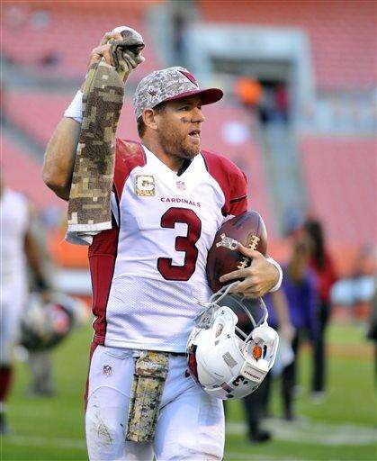 Carson Palmer completed 23 of 38 passes for 374 yards and four touchdowns with one interception against the Browns. His 20 TD passes for the season are tied with Tom Brady for most in the NFL.