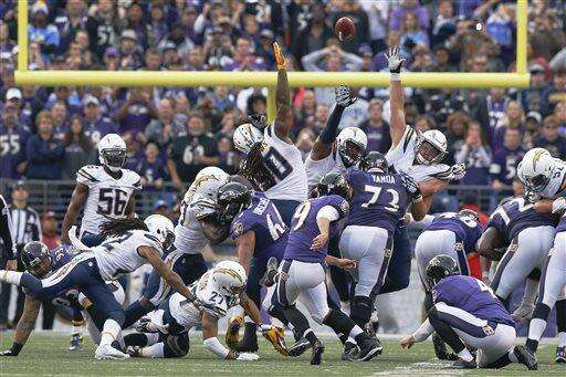 BALTIMORE (AP) - The Baltimore Ravens and San Diego Chargers have endured similarly disappointing seasons, mostly because of their inability to come up with a big play in the waning minutes.