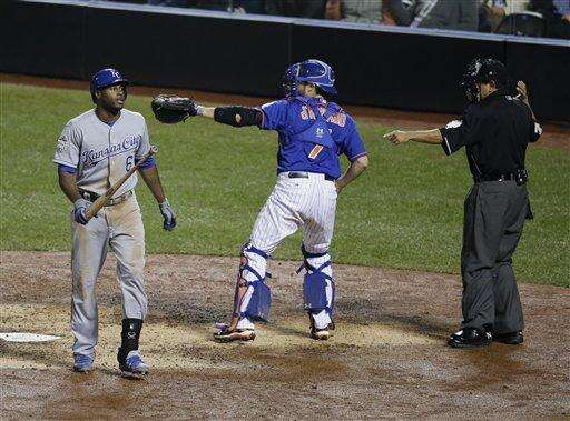 Wright fielded Salvador Perez's broken-bat chopper and made a one-hop throw to Lucas Duda for the out at first base. But Hosmer made a daring sprint home, and Duda's throw was way off target as the Hosmer slid headfirst into home plate with the tying run.