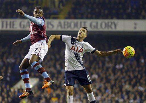 But Villa's defense had taken only three minutes to be unpicked by a Tottenham team which is now five points behind leader Manchester City in fifth place after going a 10th league match unbeaten. Mousa Dembele cut in from the left, outmuscled Ciaran Clark and slotted the ball under Brad Guzan at the goalkeeper's near post.
