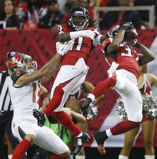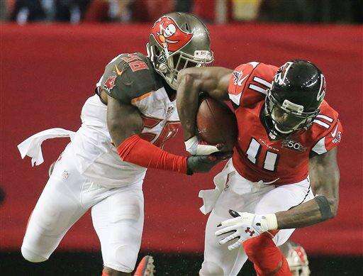BIG GAME FOR JULIO: Jones had 12 catches for 162 yards with a touchdown. He was stripped by Alexander for the first fumble after catching a pass over the middle. Alexander's 20-yard return to the Falcons 21 set up Barth's first field goal from 38 yards.