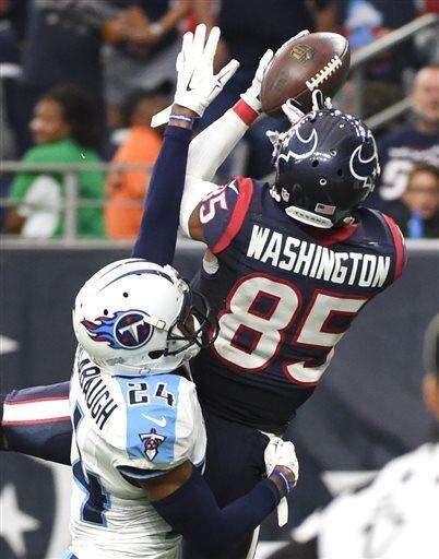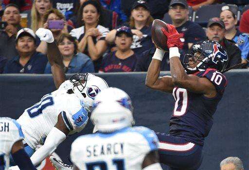 A 21-yard touchdown reception by DeAndre Hopkins put Houston on top in the second quarter and the Texans (3-5) didn't trail after that. Nate Washington's 42-yard TD catch extended the lead to 17-6 in the third.