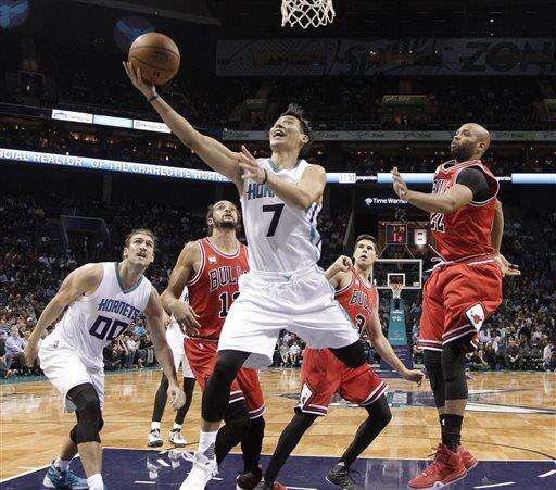 Charlotte did it with good ball movement and quality shooting from everyone, including 7-footers Hawes and Frank Kaminsky, who were a combined 4 of 4 from beyond the arc. The Hornets played near flawless ball on offense and the Bulls were slow to get a hand up on open shooters. Charlotte made them pay, knocking down shot after shot from long distance.