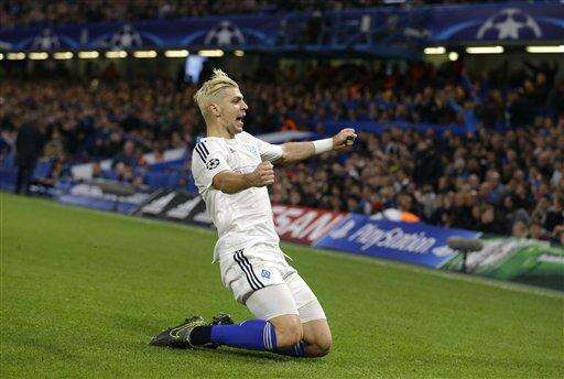 LONDON (AP) - Willian produced a late winner as Chelsea fans put on a show of support for embattled manager Jose Mourinho on Wednesday, scoring from a free kick to seal a 2-1 victory over Dynamo Kiev in the Champions League.