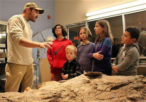 Hundreds of people, including parents with their children, lined up along the windows during a free public viewing Thursday evening. Some children were able to get an up-close look as museum staff showed off the find, while other visitors held up their smartphones on the other side of the glass.