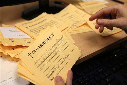 "Sometimes it's overwhelming with the pain that people have and the illnesses that they are suffering," said Donna Benden, who is among 180 lay people known as "prayer partners" who help the 100 sisters. Benden prays from 7 a.m. to 8 a.m. every Wednesday before going to work.