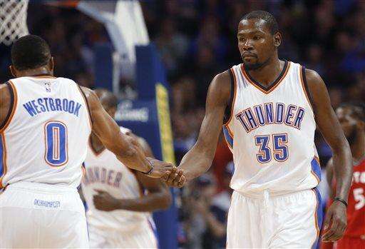 Russell Westbrook scored 20 of his 22 points in the second half and finished with 16 assists. Durant had 27 points and Enes Kanter added 15 for the Thunder.