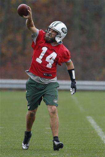 New York Jets quarterback Ryan Fitzpatrick makes a one-handed catch during NFL football practice, Thursday, Nov. 5, 2015, in Florham Park, N.J. (AP Photo/Julio Cortez) The Associated Press