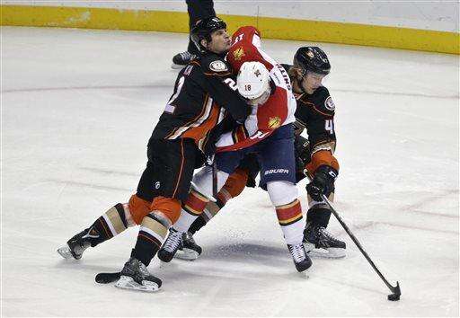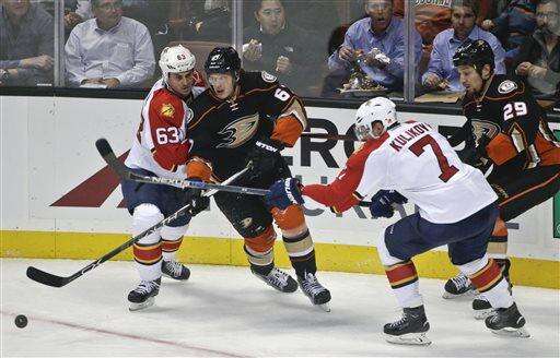 NOTES: Ducks F Rickard Rakell left with an upper-body injury in the second period. Coach Bruce Boudreau had no postgame update on the Swede, who has been one of Anaheim's best forwards this season. ... Jaromir Jagr returned from a two-game absence with an upper-body injury for Florida, facing the Ducks for the first time since December 2013. ... Grimaldi was born in Anaheim and grew up in nearby Rossmoor, and he attended Ducks games as a kid before moving away for junior hockey. ... Ducks captain Ryan Getzlaf missed his fourth straight game after an appendectomy.