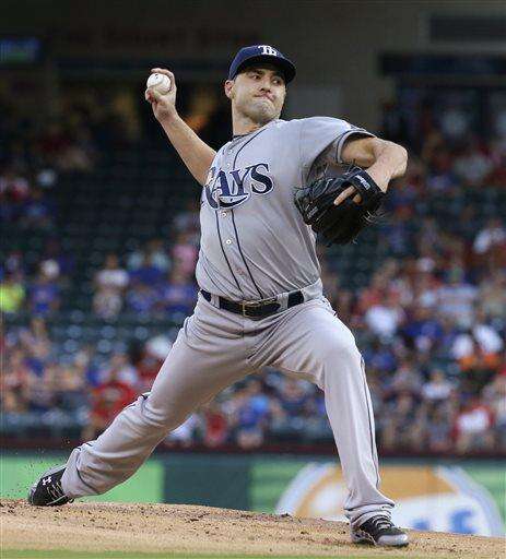 FILE - In this Aug. 14, 2015, file photo, Tampa Bay Rays starting pitcher Nathan Karns throws during a baseball game against the Texas Rangers in Arlington, Texas. The Seattle Mariners and the Rays have completed the first significant trade of the offseason, a six-player swap that sends infielder Brad Miller, first baseman Logan Morrison and pitcher Danny Farquhar to Tampa Bay for pitchers Karns and C.J. Riefenhauser, and minor league outfielder Boog Powell. The teams announced the deal Thursday night, Nov. 5. (AP Photo/LM Otero, File) The Associated Press