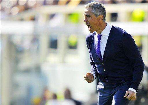 Fiorentina coach Paulo Sousa follows the game of the Italian Serie A soccer match between Fiorentina and Frosinone at the Artemio Franchi stadium in Florence, Italy, Nov. 1 2015. (Maurizio Degl' Innocenti/ANSA via AP Photo) ITALY OUT The Associated Press