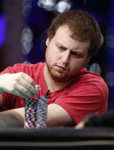 Joseph McKeehen takes chips from his stack during the World Series of Poker Monday, Nov. 9, 2015, in Las Vegas. Monday was the second of three days of poker-playing before crowning a new champion and awarding more than $7 million to the winner. (AP Photo/John Locher) The Associated Press