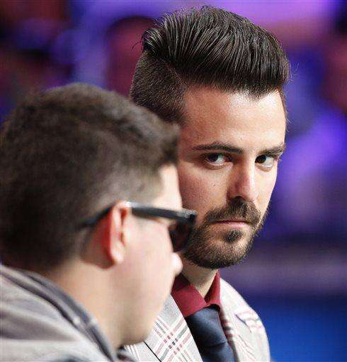 Max Steinberg, right, looks at Joshua Beckley during the World Series of Poker Monday, Nov. 9, 2015, in Las Vegas. Monday was the second of three days of poker-playing before crowning a new champion and awarding more than $7 million to the winner. (AP Photo/John Locher) The Associated Press