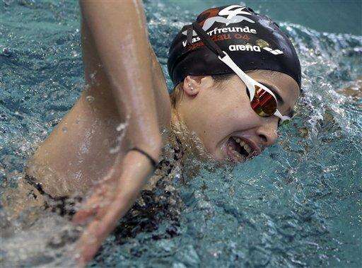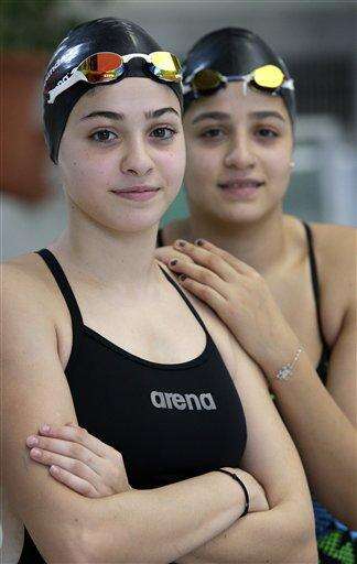 BERLIN (AP) - Sarah and Ysra Mardini pull bathing caps over their long, black hair and slide into the water, disappearing among the throng of swimmers with powerful, practiced strokes.