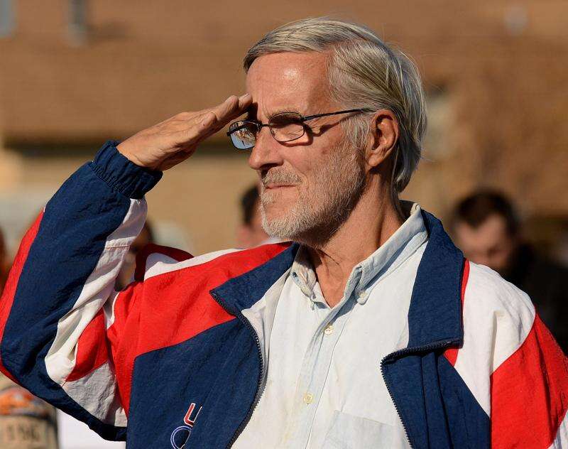 Vietnam veteran Dean Loppnow of Hoffman Estates salutes during the Hoffman Estates High School Band's "Salute to America's Finest" tribute at the village's Veterans Day ceremony Wednesday.