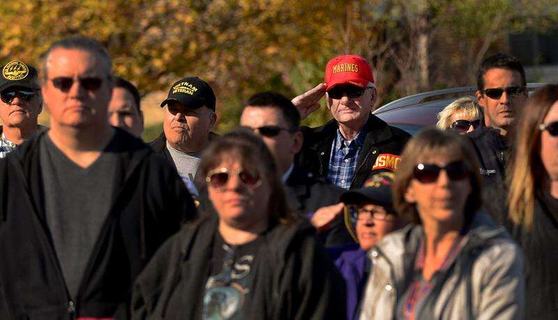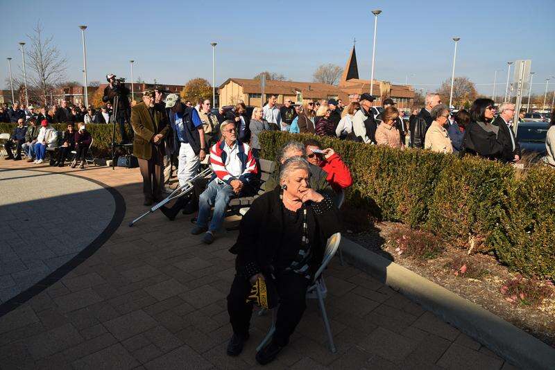 The crowd pauses for a moment of silence during the Veterans Day ceremony Wednesday at the Hoffman Estates Veterans Memorial.