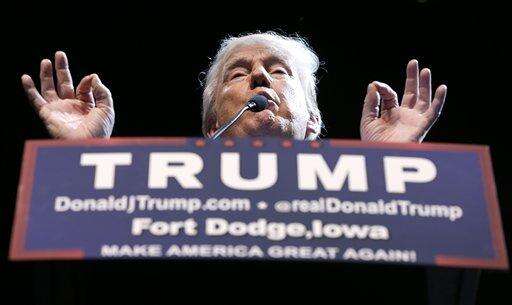 Republican presidential candidate Donald Trump speaks during a rally at Iowa Central Community College, Thursday, Nov. 12, 2015, in Fort Dodge, Iowa. (AP Photo/Charlie Neibergall) The Associated Press