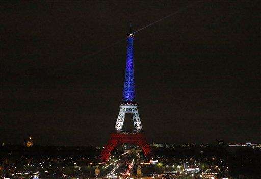 The 116-year-old international symbol of Paris will remain lit up in the colors of the French flag for three nights. Monuments around the world have done the same in recent days in a show of sympathy with Paris, including the Sydney Opera House, Berlin's Brandenburg Gate and Rio de Janeiro's Christ the Redeemer statue.