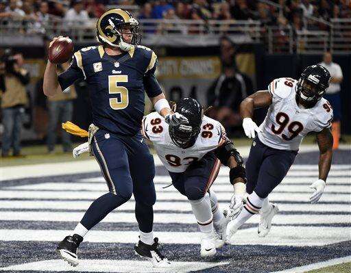 NOTES: Rams LT Greg Robinson was whistled for holding three times. Robinson was the second overall pick in 2014. ... An extremely risky fake punt by the Rams at the St. Louis 23 fizzled in the fourth, turning it over to the Bears and setting up Robbie Gould's third field goal.