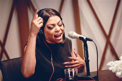 This Oct. 13, 2015 photo provided by Apple shows, Taraji P. Henson during episode 3 of Mary J. Blige's new radio show, "Real Talk." The episode airs on Apple Music’s Beats 1 Radio on Sunday, Dec. 6, 2015. (Apple via AP) The Associated Press