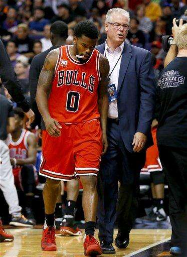 Bulls: Rose is day to day, Hoiberg said before the game. Rose's ankle is still sore and he's not expected to do much in practice on Thursday beyond testing out the ankle with running and making cuts. ... The Bulls have won 11 of the past 14 meetings. ... Joakim Noah grabbed 11 rebounds without scoring a point, the first time a Bulls player had double digits in rebounds without scoring since March 11, 2011, when Noah had 11 boards against Atlanta.