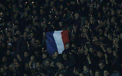 Supporters of Nice observed a minute's silence holding candles, in memory of the victims of the last Paris Friday's attacks, at the Nice Stadium before the French League One soccer match between Nice and Lyon, Friday, Nov. 20, 2015, in Nice, southeastern France. 129 people and wounded hundreds of others were killed in the last Paris Friday's attacks. (AP Photo/Lionel Cironneau) The Associated Press