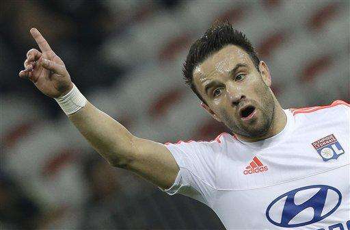 Lyon's Mathieu Valbuena reacts during the warm up before the French League One soccer match against Nice, Friday, Nov. 20, 2013, in Nice stadium, southeastern France. (AP Photo/Lionel Cironneau) The Associated Press