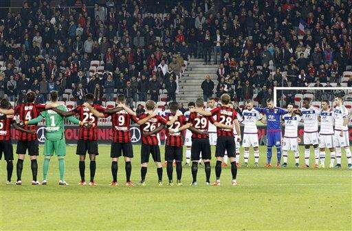 PARIS (AP) - One week after the terror attacks that killed 130 people in Paris, the French soccer league resumed Friday as Nice beat Lyon 3-0 in a somber atmosphere.