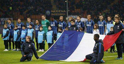 There were also thousands of French flags waved by the fans in Udine, while in Florence a huge banner of support was unfurled with the words "close to the French people."