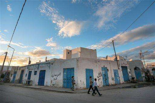 In this Friday, Oct. 30, 2015 photo, boys walk past closed shops on the beginning of Shabbath, after sunset, at Hara Kbira, the main Jewish neighborhood in the Island of Djerba, southern Tunisia. The Jewish community on the resort island of Djerba traces its roots all the way back to Babylonian exile of 586 B.C., and is one of the few communities of its kind to have survived the turmoil around the creation of Israel, when more than 800,000 Jews across the Arab world either emigrated or were driven from their homes. (AP Photo/Mosa'ab Elshamy) The Associated Press