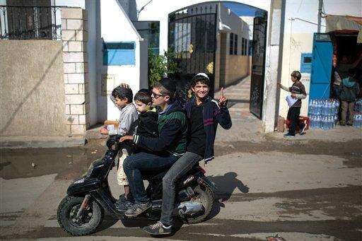 In this Friday, Oct. 30, 2015 photo, a boy gestures to the camera as he and his relatives leave school at Hara Kbira, the main Jewish neighborhood on the Island of Djerba, southern Tunisia. Tunisia’s Jewish population has dwindled from 100,000 in 1956, when the country won independence from France, to less than 1,500, mainly as a result of emigration to France and Israel. But unlike in much of the rest of the Arab world, Tunisian Jews have seen little direct persecution and have only rarely been targeted by extremists. (AP Photo/Mosa'ab Elshamy) The Associated Press