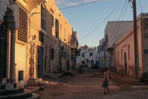 In this Friday, Oct. 30, 2015 photo, a girl walks home after sunset, at Hara Kbira, the main Jewish neighborhood on the Island of Djerba, southern Tunisia. The Jewish community in the resort island of Djerba traces its roots all the way back to Babylonian exile of 586 B.C., and is one of the few communities of its kind to have survived the turmoil around the creation of Israel, when more than 800,000 Jews across the Arab world either emigrated or were driven from their homes. (AP Photo/Mosa'ab Elshamy) The Associated Press
