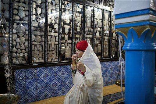 In this Wednesday, Oct. 28, 2015 photo, a Tunisian Jewish woman prays in La Ghriba, the oldest synagogue in Africa, on the Island of Djerba, southern Tunisia. The Jewish community in the resort island of Djerba traces its roots all the way back to Babylonian exile of 586 B.C., and is one of the few communities of its kind to have survived the turmoil around the creation of Israel, when more than 800,000 Jews across the Arab world either emigrated or were driven from their homes. (AP Photo/Mosa'ab Elshamy) The Associated Press