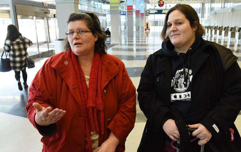 While multiple families were regrouping, Bettina Dornseifer of Mount Prospect was bidding goodbye to her husband while she and adult daughter Carina prepared to fly to Frankfort, Germany, to see her father.
