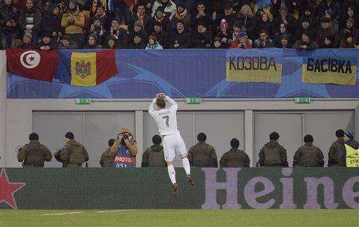 Already qualified before traveling to Ukraine, 10-time European champion Real Madrid conceded three goals in 12 minutes yet still came away with a 4-3 win over Shakhtar Donetsk in the group's other match. Cristiano Ronaldo scored twice as Madrid made sure of finishing top.