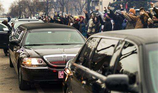 Family members of Jamar Clark got out of a limousine to show show support for the Black Lives Matter supporters as Clark's the funeral procession passed by the Minneapolis Police Departmentâs 4th Precinct, Wednesday, Nov. 25, 2015, in Minneapolis. Clark, whose death in a confrontation with police, has sparked more than a week of protests. (Richard Tsong-Taatarii/Star Tribune via AP) MANDATORY CREDIT; ST. PAUL PIONEER PRESS OUT; MAGS OUT; TWIN CITIES LOCAL TELEVISION OUT