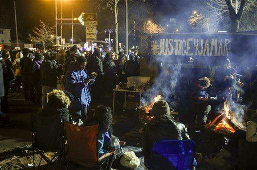 Demonstrators camp outside the Minneapolis Police Departmentâs 4th Precinct during a protest for the death of Jamar Clark, Tuesday, Nov. 24, 2015, in Minneapolis. The fatal shooting of Clark, a black man, by a Minneapolis police officer, has pushed racial tensions in the city's small but concentrated minority community to the forefront, with the police precinct besieged by the makeshift encampment and many protesters. (AP Photo/Craig Lassig)