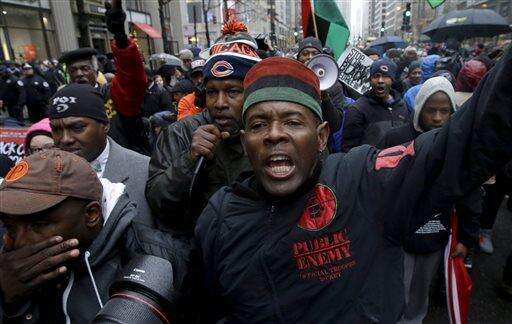 CHICAGO (AP) - Hundreds of protesters blocked store entrances and shut down traffic in Chicago's ritziest shopping district on Black Friday to draw attention to the 2014 police killing of a black teenager who was shot 16 times by a white officer.