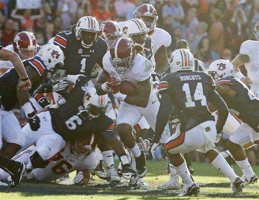 Alabama running back Derrick Henry (2) carries the ball against Auburn during an NCAA college football game, Saturday, Nov. 28, 2015, in Auburn, Ala. (AP Photo/Butch Dill) The Associated Press