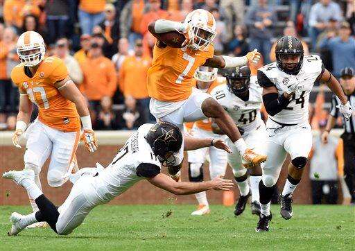 Tennessee beat Vanderbilt for a second straight year after losing to its in-state rival in 2012 and 2013. Tennessee has won 31 of its last 34 meetings with Vanderbilt overall.