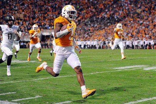 Tennessee's Jalen Hurd rushed for 120 yards and a touchdown, and Cameron Sutton scored on an 85-yard punt return. Vanderbilt stayed close for most of the first half before Tennessee reeled off 33 straight points, turning a 20-14 game into a 53-14 runaway.
