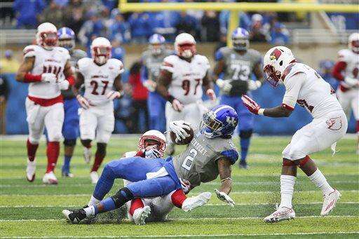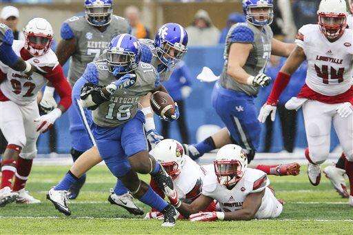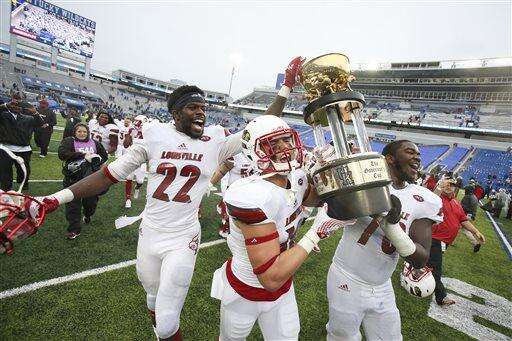 LEXINGTON, Ky. (AP) - Louisville players enthusiastically hoisted the Governor's Cup in the steady drizzle, an understandable reaction considering the scenario seemed unlikely early on as rival Kentucky turned their error-prone start into a big lead.