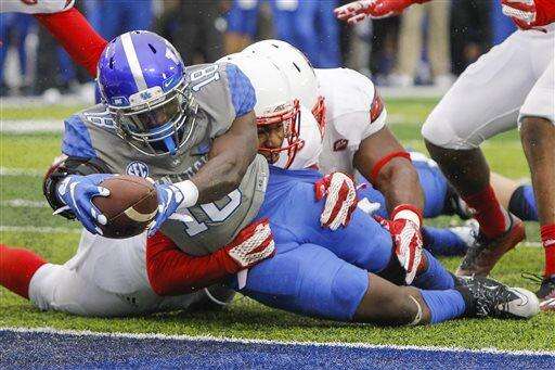 Kentucky running back Stanley Williams scores a touchdown during the first half of an NCAA college football game against Louisville, Saturday, Nov. 28, 2015, in Lexington, Ky. (AP Photo/David Stephenson)