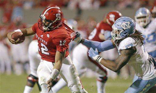 Jacoby Brissett threw for two touchdowns and ran for two more for N.C. State, which put together a couple of long drives in the second quarter to finally slow the Tar Heels' pedal-to-the-floor start.