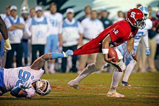 UNC also got TD catches from Quinshad Davis and Hollins, tying the program's single-quarter scoring record by rolling to a 35-7 lead. That was too big of a hole for the Wolfpack (7-5, 3-5), who managed to slow the Tar Heels' early run but never recovered.