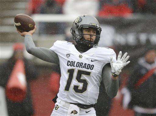 Colorado quarterback Cade Apsay (15) passes the ball against Utah in the first half during an NCAA college football game Saturday, Nov. 28, 2015, in Salt Lake City. (AP Photo/Rick Bowmer) The Associated Press