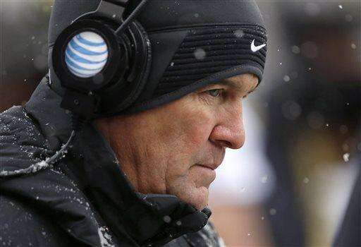 Colorado head coach Mike MacIntyre looks on in the first half during an NCAA college football game against Utah, Saturday, Nov. 28, 2015, in Salt Lake City. (AP Photo/Rick Bowmer) The Associated Press