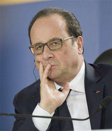French President Francois Hollande, holds a press conference after the Climate Change special session held during CHOGM (Commonwealth heads of Government meeting), at the Raddison Golden Sands Hotel, Ghajn Tuffieha, Malta, Friday, November, 27 2015 ( AP Photo/Rene Rossignaud)