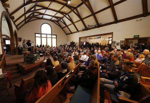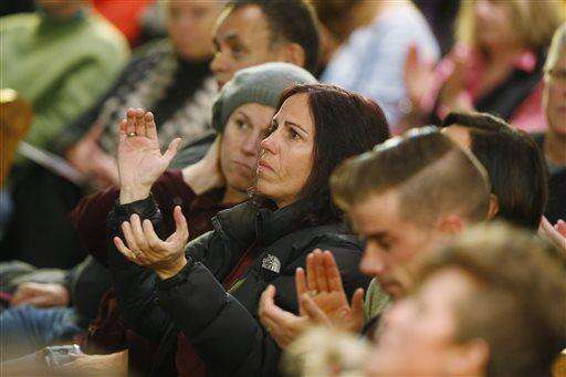 Vicki Cowart spoke at the first of several vigils planned for victims Saturday and drew a standing ovation as she walked to the church pulpit.